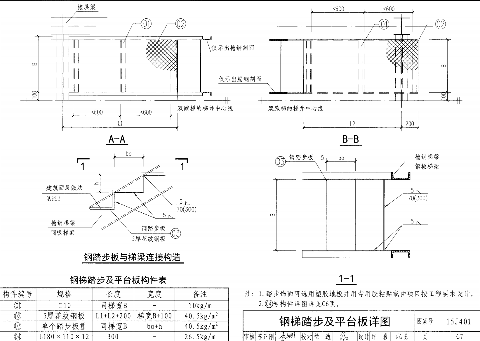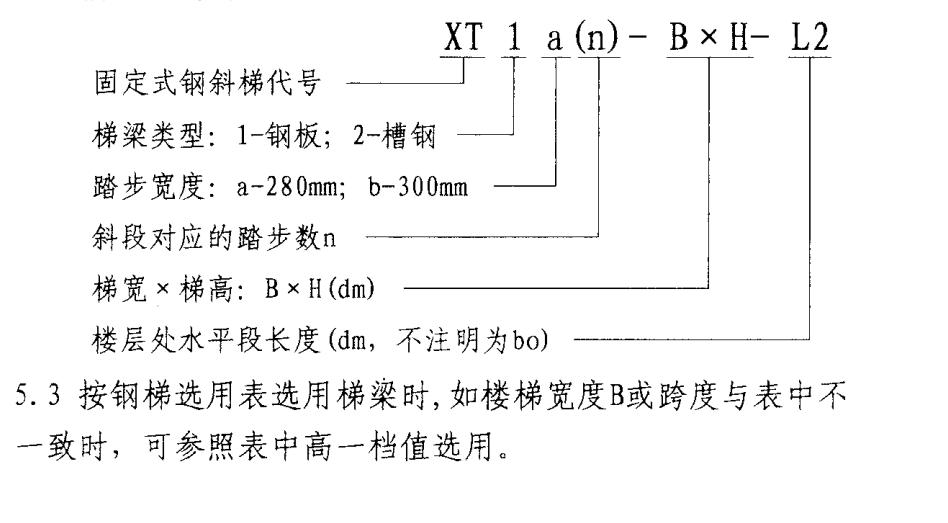 bo) 按钢梯选用表选用梯梁时,如楼梯宽度 一致时,可参照表中高一档值选用或跨度与表中不