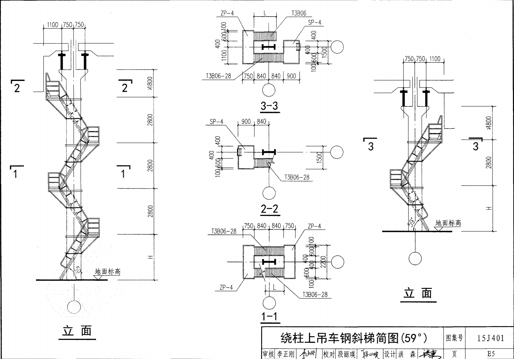 绕柱上吊车钢斜梯简图(59°)